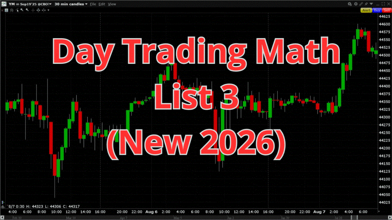 This is a list of 29 very high math day trades all with specific instruments and time frames for a specific amount of ticks or profit for you to take every week and month. This is a continuation of Day Trading Math List 1 & 2.